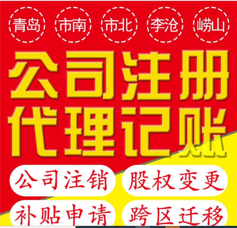 专业承接青岛地区公司注册,代理记账,纳税申报,股权变更,财税顾问,进出口权,出口退税;公司转让寄售等业务,欢迎广大新老客户来电垂询。...